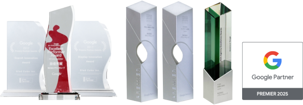 リスナビを運営するGladCubeは創業から18年間ずっとWebマーケティング事業に従事し、累計取り扱い広告費は1,000億円以上と国内トップクラスの実績。Google社からは下記の通り多くの賞を受賞し、そのほかYahoo!、Meta、X、LINEといった日本での主要SNSにおいて正規代理店として認定されています。